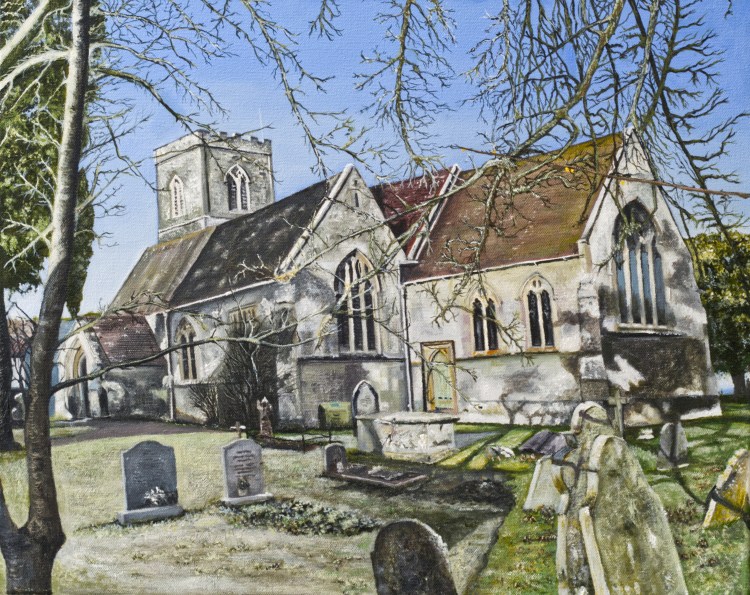 St Mary’s Church, Motcombe, near Shaftesbury, oil painting on canvas, 20″x16″ (51cmx40.5cm), 2022